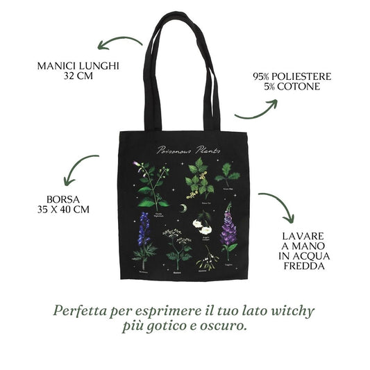 Tote bag "Poisonous Plants" in policotone, shopper stampa witchy botanica