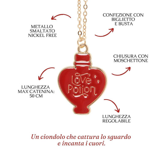Collana "Love Potion" in metallo smaltato con biglietto regalo