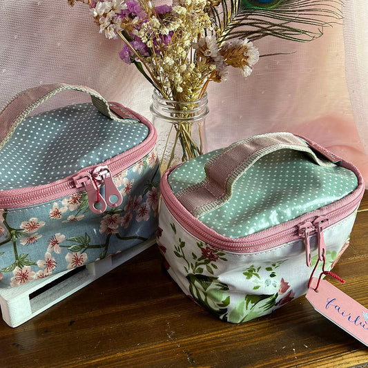 Beauty mini, trousse makeup in cotone cerato, fantasia floreale