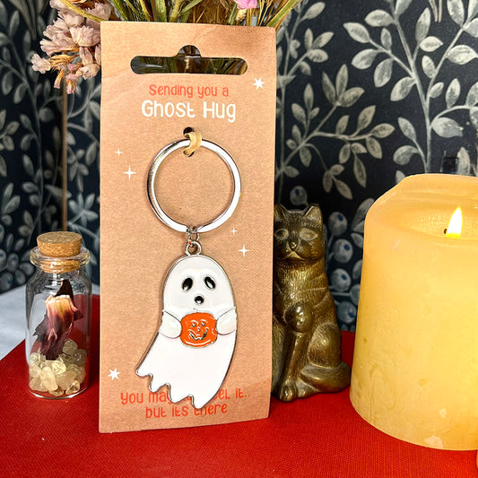 Portachiavi "Ghost Hug", fantasma e zucca di Halloween, metallo smaltato