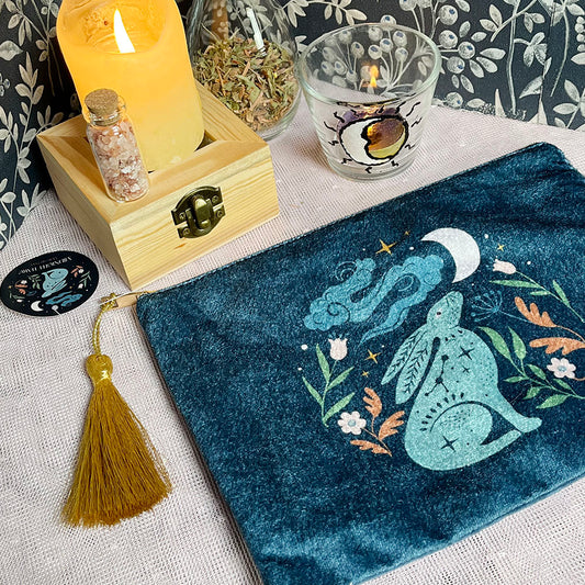 Astuccio "Lepre lunare" in velluto, lepre mistica, stregoneria, magia
