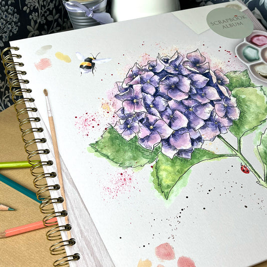 Album per scrapbooking, fotografie, disegni e ricordi "Ortensia" 30x30cm