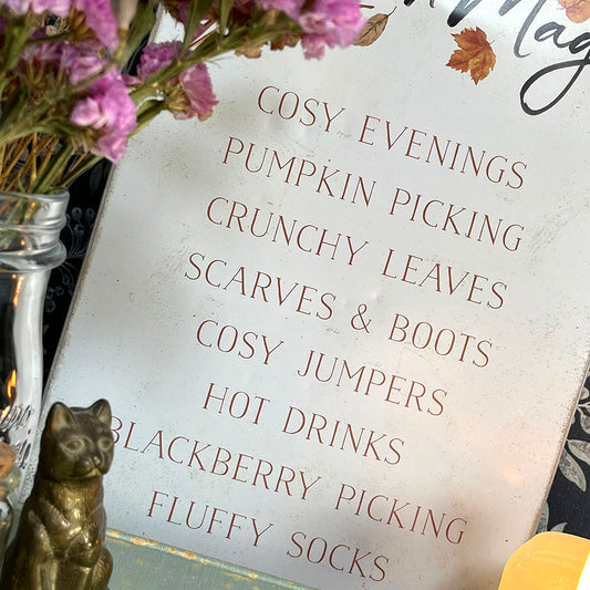 Insegna Autumn Magic, decorazione in latta da appendere, autunno cozy