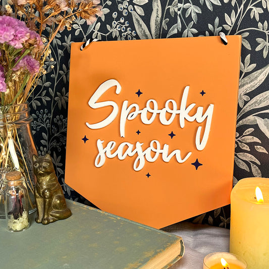 Insegna "Spooky Season" gagliardetto di Halloween arancione
