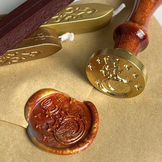 Sigilli per ceralacca con impugnatura in legno , soggetti vari