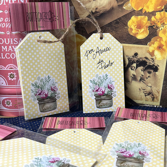 Set 6 biglietti chiudi-pacco "Love&Flowers" acquerello