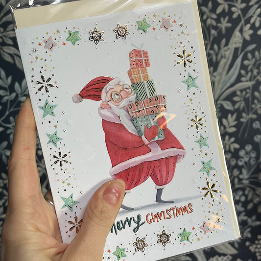 Christmas greeting cards with embossed details and metallic paint, various subjects