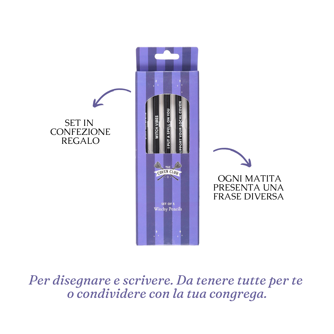 Matite "Witch Club", set da 5, con frasi, witchy vibes